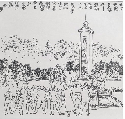 公司党总支书记王辉为全体团员提出希望,他强调指出,共青团是中国共产党领导的先进青年的群团组织,是广大青年在实践中学习中国特色社会主义和共产主义的公司,是中国共产党的助手和后备军。这次活动是公司党建带团建的一次重要的实践活动,希望广大青年团员要严格要求自己,强化“四个意识”,坚定“四个自信”,做到“两个维护”,争做时代先锋,为太阳成集团tyc的发展贡献自己的力量。活动中,王辉老师以速写的形式记录了本次祭奠活动的场景。