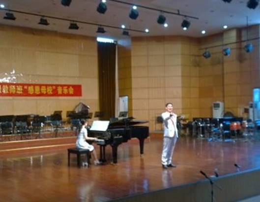 6月4日,公司学科带头人范义付副教授应邀参加由武汉音乐公司员工会主办的“感恩母校”音乐会。音乐会前,范老师作为代表向母校赠送了锦旗。音乐会上范老师演唱了歌曲《故土情》、演奏了小提琴协奏曲《梁山伯与祝英台》。