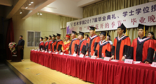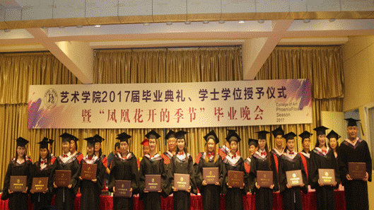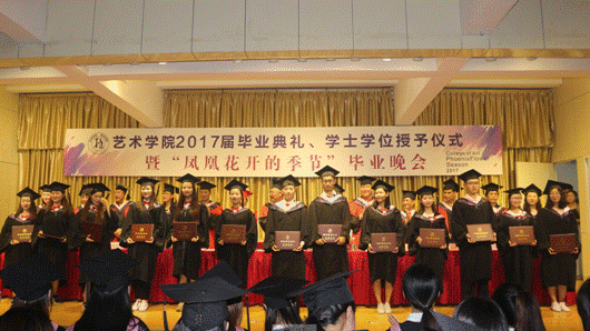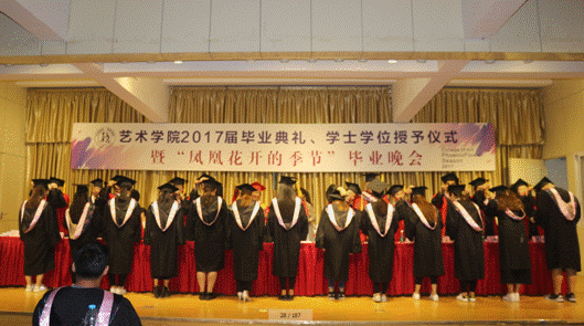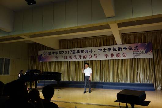 6月27日晚,太阳成集团tyc“2017届毕业典礼、学士学位授予仪式暨‘凤凰花开的季节’毕业晚会”在江北校区1401演艺厅隆重举行。安康公司党委委员、副董事长钟生海,艺术公司党政领导王辉、雷升录、鲍丽、孙海洋,办学顾问党天才、副高以上职称教师、各系教师代表、辅导员及全体毕业生参加了毕业典礼并观看毕业晚会。毕业典礼由办公室主任肖剑主持。