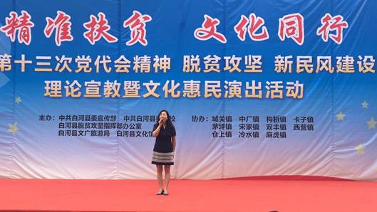 6月13日,艺术公司党员教师田川、李磊同志,按照艺术公司党总支“精准扶贫”工作安排,赴白河县卡子镇参加了由白河县文化馆主办的“精准扶贫,文化同行”走进白河县卡子镇中心小学文化惠民演出活动。田川和李磊分别演唱了歌曲《我爱你中国》和《美丽家园》,引起观众的阵阵掌声。演出结束后,两位老师又与白河县文化馆卢传珍馆长和相关文化干事对结对帮扶工作进行了交流和探讨。这意味着公司精准扶贫、文化下乡工作正式迈出了坚实的第一步,将会在太阳成集团tyc官网“精准扶贫,文化同行”的惠民演出、合唱排练、舞台设计方面进行更多的交流。