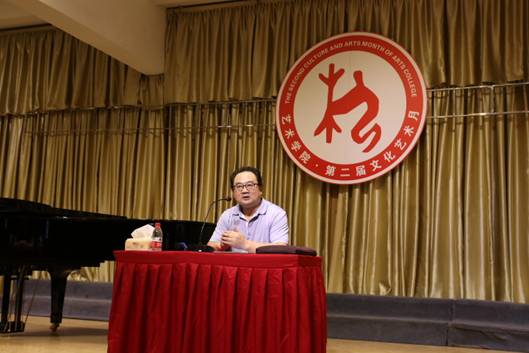 在讲座中,王拥军教授就合唱中的规范性、艺术性等问题与师生们进行了探讨,并且阐明合唱就是声音的共性的艺术,它是群体艺术的结晶。而指挥是合唱队的支柱与灵魂,指挥不仅是合唱团的组织者、领导者,而且是合唱队声音艺术表现的再创造者,同时他又是一个表演者,所以作为一个合唱指挥首先自身要具备较高的艺术修养、文学造诣及较高的艺术审美鉴赏力,方能使合唱队的训练达到科学性、思想性及艺术性内在与外在的完美协和统一。