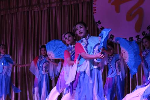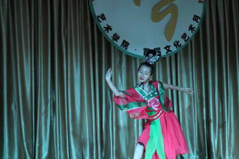本次晚会以舞蹈《盛世》把观众引入一个舞蹈世界。紧接着具有民族特色的舞蹈《苗家酒歌》上演,优美的舞姿,把我们带入了彩云之南的奇幻美景之中。《欢乐的跳吧》是印度舞蹈,姑娘们随着欢快的音乐欢快地跳着,纱裙飞舞着,跳出火热的激情,观众们也随之热情起来。古典舞《铜雀女》带我们穿越让我们看到一个妙龄少女被迫陪伴亡灵虚度一生,高台沉沉,悲风习习,舞袖沉沉凝聚着剪不断的愁绪。《船歌》、《洗衣歌》、《雨竹林》、《瑶山风韵》和《郎在对门唱山歌》等舞蹈,动人旋转每一个动作都随着那悦耳的旋律起舞翩翩,给观众以唯美的动态呈现,表演的同学们用舞蹈展示了不同地方的风土人情,呈现出一道道多彩的“菜肴”。