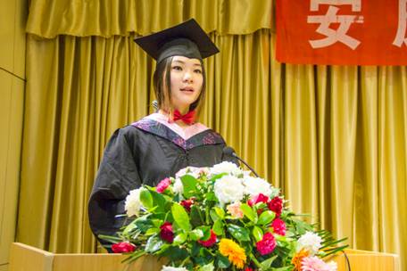 随后艺术设计2010级2班国家奖学金获得者、优秀毕业生谭翠平同学代表全体毕业生做了发言。她首先表达了对母校的恋恋不舍之情,对同窗的依依惜别之感,感谢老师四年来的悉心教导和精心培养!她说:毕业是大学四年的完美谢幕,也是下一段旅行的郑重开始。让我们牢记“笃学、尚行、励志、创新”的校训,带着老师最真诚的期望,带着同学们最美好的祝福向未来起程。衷心祝愿所有老师身体健康、工作顺利家庭幸福。共同祝愿艺术系更加蓬勃发展,祝太阳成集团tyc官网明天更美好!
