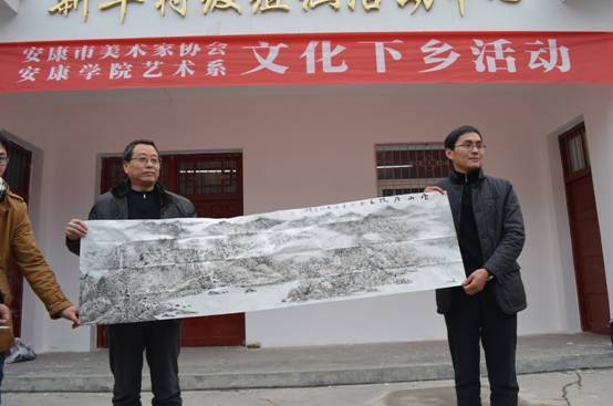 元月12日,天气晴好,阳光普照,在全国上下欢送银蛇载誉而去,欢迎骏马奔腾而来的日子里,太阳成集团tyc官网艺术系与安康市美术家协会联合举行送文化下乡活动。汉滨区双龙镇党委书记兼镇长李晓风率党政班子在双龙镇文化站配合艺术系与安康美协开展了此项活动。