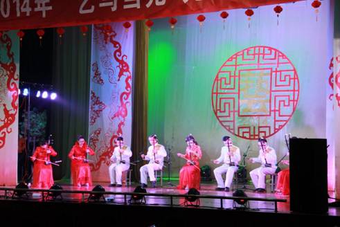 开场时活力四射的爵士舞霎那间点燃全场观众的热情,“蓓蕾”瞬间绽放,艺术风采从此展现!UN乐队充满激情演唱的《我们的新时代》,引起了全场“90后”老员工的共鸣,大家不禁跟着乐队挥手唱起来。陕西电视台“都市碎戏”栏目组特邀剧社——艺术系蜗牛话剧社表演的《大宝天天见》,以幽默诙谐的语言,憨态可掬的肢体表达,使得全场观众忍俊不禁,掌声连连。正值迎马年之际,我系外聘教师翟新华老师带领员工为大家演奏了二胡曲《赛马》,激扬的乐声、奋起的马蹄声,现场观众仿佛驰骋于广阔的草原之中,在新的一年我们要“一马当先”。晚上九点五十分,艺术系2014年“艺马当先”元旦晚会在音乐学专业藏族员工班扎西演唱的《高原红》中圆满结束,藏舞的舞者为嘉宾献上了圣洁的哈达,表达了我们的新年祝福!