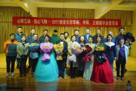 2021年3月31日晚7:30,公司音乐学2017级毕业生李楠、申佩、王媛媛毕业音乐会在江北校区1401演艺厅举行。安康市音乐家协会主席刘秉平、副主席杨晓红、秘书长饶翔音、艺术公司党总支书记樊仁杰、副经理成党伟、党总支副书记李万明、副经理鲍丽及音乐系专业课教师出席了本场音乐会。