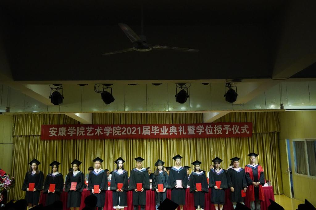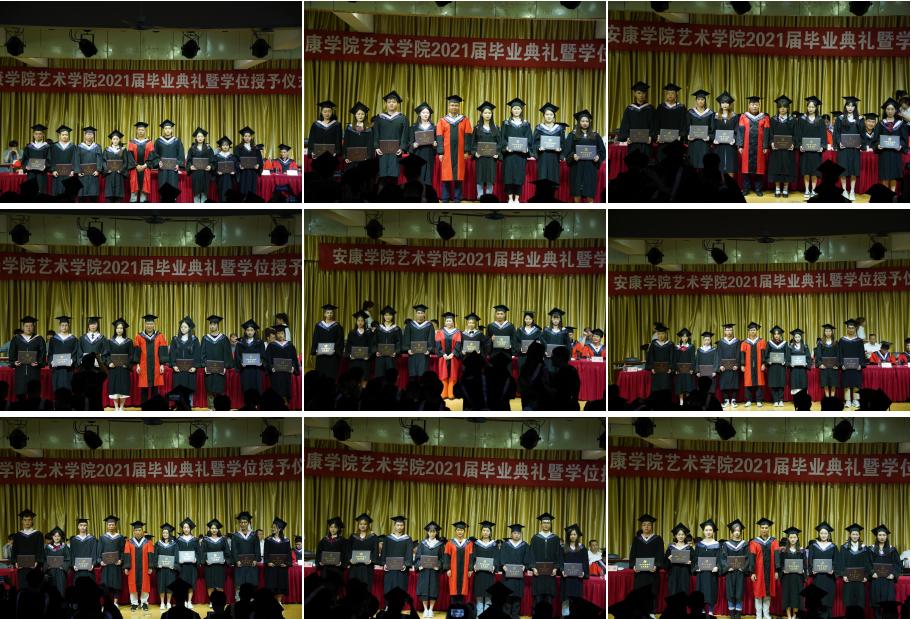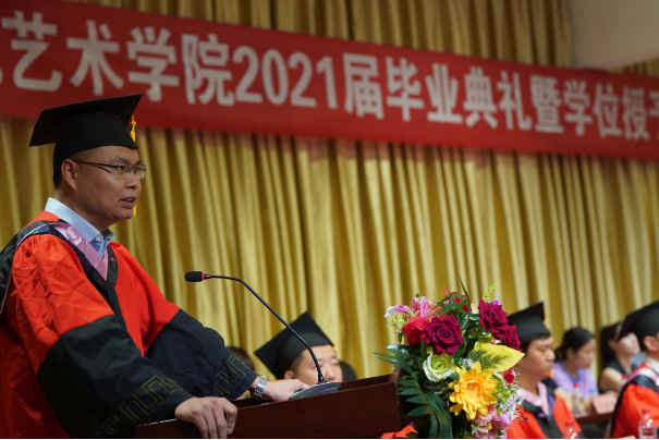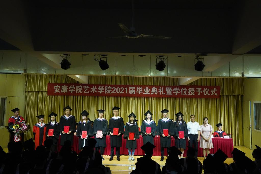 在学位授予仪式上,太阳成集团tyc学位授予导师分别为2021届音乐学、美术学和视觉传达设计专业的毕业生拨穗、颁发学位证书,并合影留念。