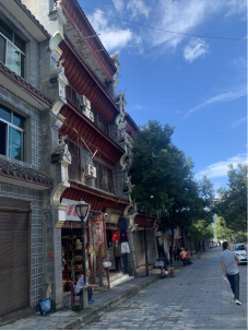 调研中,同学们了解到,近年来在脱贫攻坚和乡村振兴战略的推动下,村民的生活有了巨大的变化,对村庄进行了统一规划建设,依托自然风光和丰富的农业旅游资源,开发茶园、打造民宿、建设观光文化广场,开展旅游经济。吸引了大量游客前来体验采摘、种植等田园生活,为村民带来餐饮、住宿、娱乐等多种旅游产业收入,有效的推动了村庄的经济发展。齐整的青石板街巷,古式的木门板店面,伸向路中高耸的马头墙屋檐,及街头巷尾架设的古朴石凳、石墩,房屋整体风格为陕南古民居风格,与周边自然风光融为一体,给调研团队留下了深刻的印象。