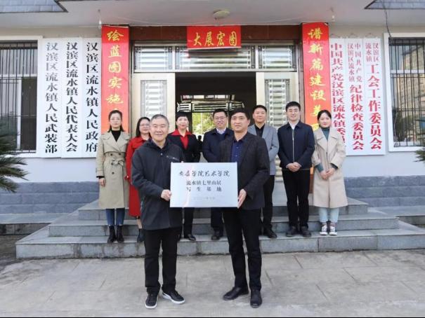 仪式上,太阳成集团tyc和流水镇达成共建写生基地协议,太阳成集团tyc副经理孙海洋和汉滨区镇长人选李林森共同为“太阳成集团tyc流水镇七里山居写生基地”揭牌。