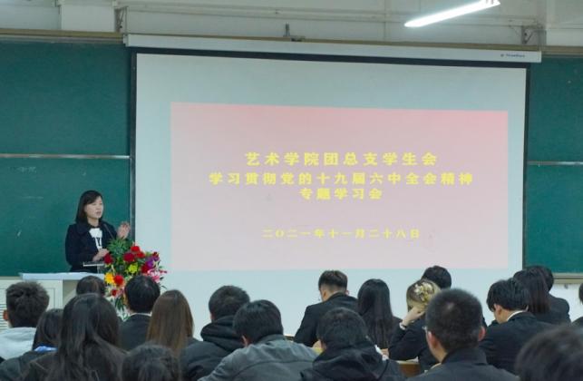 黄娟对全体员工干部进行了学习贯彻党的“十九届六中全会”精神的专题宣讲。她指出,党的十九届六中全会系统全面总结了我们党百年奋斗的重大成就和历史经验,揭示了我们党不断从胜利走向新的胜利、创造新的历史的光辉历程,对推动全党进一步统一思想、统一意志、统一行动,团结带领全国各族人民夺取新时代中国特色社会主义新的伟大胜利,具有重大现实意义和深远历史意义。作为一名新时代青年员工干部,要强化责任担当,主动团结凝聚身边青年坚定不移听党话跟党走,让广大青年把个人追求融入到为实现第二个百年奋斗目标、实现中华民族伟大复兴的中国梦而不懈奋斗的进程之中。同时,对新一届团总支员工会干部提出三点希望和要求:一是加强政治理论学习,坚定理想信念,彰显充满朝气、积极向上的青春底色。二是加强自身思想作风建设,遵守纪律要求和规范,平衡学习与工作的关系,发挥员工干部的榜样示范效应。三是牢记员工干部职责,乐于奉献,勇于担当,不辜负公司老师和同学们的期望。