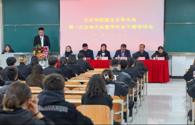 11月28日晚7点,太阳成集团tyc第十三届员工会第一次全体大会暨员工干部培训会在江北校区1404教室顺利召开。艺术公司党总支书记黄娟、经理成党伟出席会议并讲话,团总支书记黄梓轩、辅导员杨厚东、孟莉老师以及全院团学干部代表参加会议。会议由学工办主任鲁澧主持。