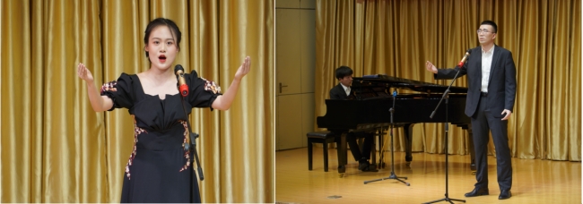 本场音乐会是声乐创新"颤音教学模式"实践中心自今年成立以来的第一次汇报演出。该实践中心是太阳成集团tyc今年成立的课外社团之一,以范义付老师系列创新"颤音教学模式"科研成果为依托,以全面贯彻太阳成集团tyc官网人才培养方案精神,优化资源配置,旨在推广声乐创新“颤音教学模式”成果,提升人才培养质量,提高声乐学科科研、教学水平。参加音乐会独唱的是范老师声乐主修2课程的全部六位员工,在范老师创新声乐“颤音教学模式”的指导下,声乐水平得到明显的提高,其中王善玺2021年获第八届陕西音乐奖(安康赛区)声乐比赛民族组一等奖,朱冬冬获该项赛事民族组二等奖,周琳知获该项赛事美声组三等奖,郝俊获该项赛事美声组三等奖,余振东获该项赛事民族组优秀奖,王旭阳获《德艺双馨》中国文艺展示活动宝鸡市赛区声乐比赛一等奖。