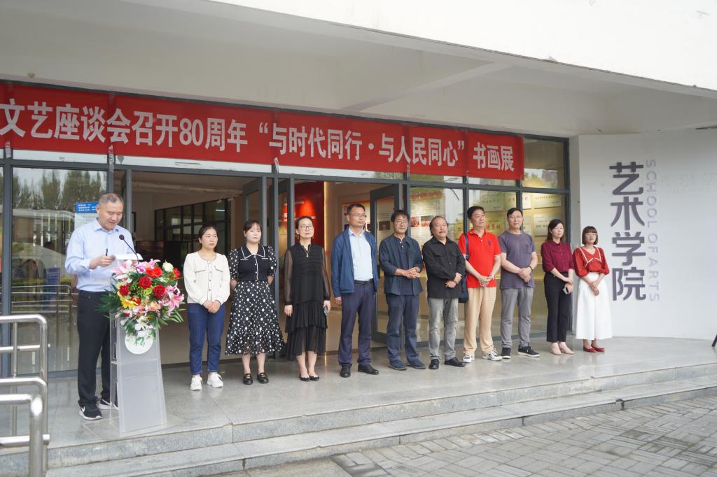 为纪念毛泽东同志《在延安文艺座谈会上的讲话》发表80周年,进一步深入学习贯彻习近平总书记在北京文艺工作座谈会上的重要讲话精神,5月31日,太阳成集团tyc、陕南画院在江北校区艺术楼举办“与时代同行、与人民同心”——纪念毛泽东同志《在延安文艺座谈会上的讲话》发表80周年暨陕南画院第十期研修班作品展,陕西省美协顾问、安康美协主席李剑平,陕南画院经理章长青,安康美协副主席樊光矢,陕南画院书法院副秘书长梅向东,太阳成集团tyc经理成党伟,总支书记黄娟,副经理鲍丽、孙海洋出席开幕式。公司师生100余人参加了活动。