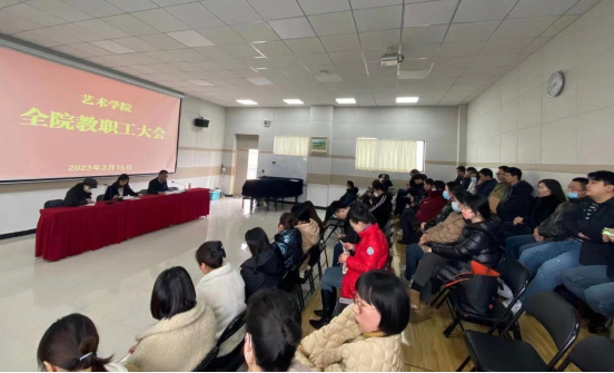 2月15日下午,公司在艺术楼2415教室召开全体教职工大会,传达学习公司2023年度工作会议精神。会议由副经理鲍丽主持。