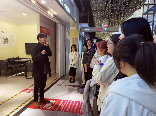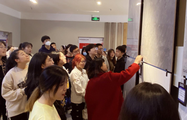 实践教学过程中,王兵老师首先向同学们介绍了此次实践调研活动的流程及注意事项,要求同学们珍惜学习机会,认知听讲,做好记录,在实践中检验课堂知识。居然之家和联邦家居相关门店负责人对同学们的到来表示热烈欢迎,同时对企业文化和主营装饰材料、家居产品等均做了细致介绍。王兵老师与门店负责人一起,带领同学们参观了企业材料与工艺展厅和家具展场,依次向同学们介绍了室内装饰石材、板材、木地板、门窗等材料知识,同时带着同学们参观了企业工艺展厅的水电施工、吊顶施工、乳胶漆施工等工艺展示,随后参观了家具展场。以往只在课堂中出现的装饰材料和工艺展示,现在实际出现在自己的眼前,同学们都兴致勃勃,听的认真,记得仔细,时不时交流互动,实践调研活动现场气氛活跃,同学们受益匪浅。