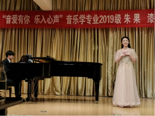 朱果同学演唱的《玫瑰三愿》《虞美人·听雨》是两首中国古诗词艺术歌曲。《一杯美酒》旋律优美、欢快,朱果同学载歌载舞的演唱将音乐会推向高潮。