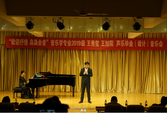 本次音乐会分上下两场举行,第一场由王旭阳、王善玺两位同学演唱,音乐会以“欲语抒情 袅袅余音”为主题,一共演唱了15首声乐作品,曲目范围涵盖艺术歌曲,中国古诗词歌曲,民歌,歌剧咏叹调以及歌剧选段等。
