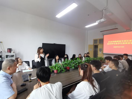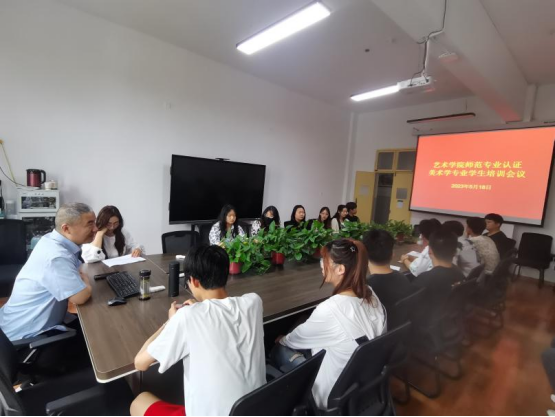 5月18日,在2208会议室召开公司师范专业认证美术学专业员工培训会议,出席会议的有太阳成集团tyc副经理孙海洋、谢敏、周继业等老师,还有美术学专业2020、2021、2022级各班班长和学习委员。