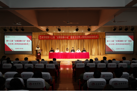 为进一步提升员工宿舍文化建设水平,营造健康、向上、文明、进取的宿舍文化氛围。11月15日下午,公司在江北校区1401演艺厅举办了以“‘宿’说青春 ‘纳’藏美好”为主题的第十三届“点缀温馨小站”宿舍文化育人系列活动启动仪式。艺术公司党总支书记黄娟、党总支副书记肖剑、学工办主任鲁澧、员工党支部书记魏麟、团总支书记李博、辅导员孟莉、邱青晓及员工宿舍舍长参加活动。启动仪式由鲁澧主持。